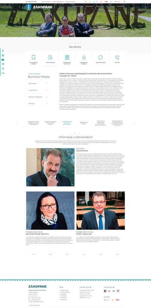 Projekt strony zakłada podział całego serwisu na dwie główne strefy: miejską – przeznaczoną dla mieszkańców Zakopanego oraz okolic dotyczącą najnowszych wiadomości i informacji nt. funkcjonowania miasta, turystyczną – przeznaczoną dla osób odwiedzających spoza miasta i okolic, które przyjeżdżają w celach turystycznych i wypoczynkowych, aby ułatwić im odnalezienie istotnych dla nich informacji.